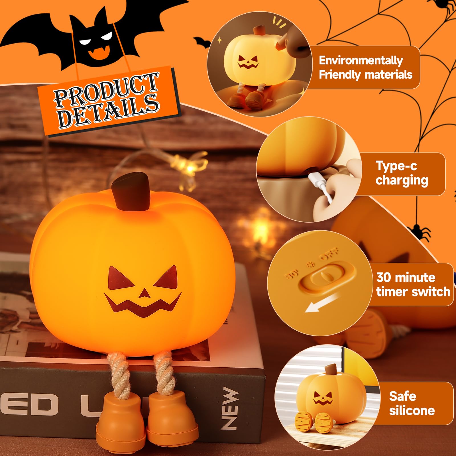 🎃This pumpkin night light is made of food-grade silicone, soft light is not blinding, tap that is bright three dimming. usb rechargeable design, both Halloween atmosphere artifacts, but also when the baby night light, cute and practical! 🎃